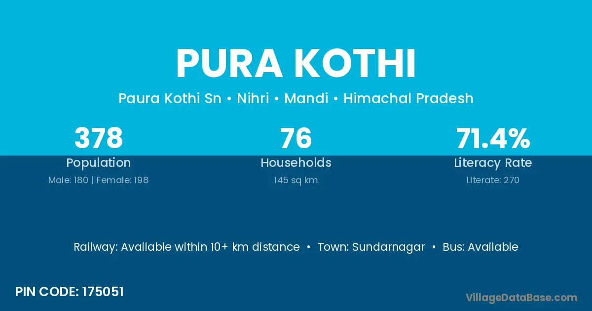 Sundarnagar is the nearest town to Pura Kothi village for major economic activities