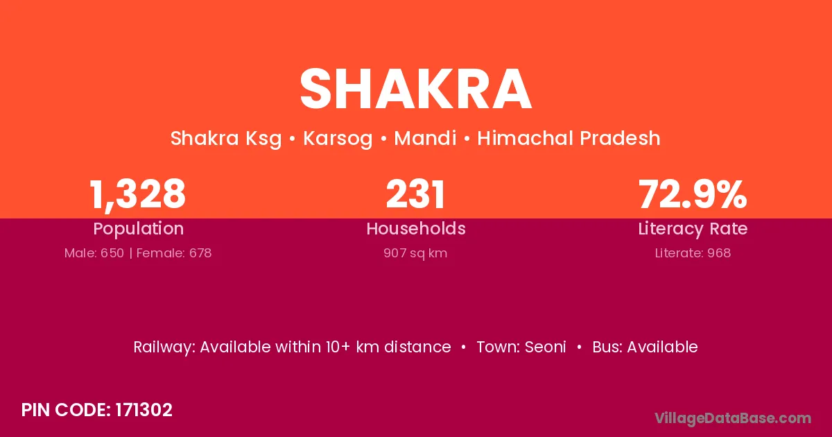 Sundarnagar is the nearest town to Shakra village for major economic activities