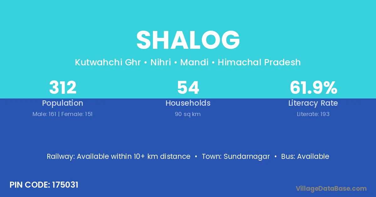 Sundarnagar is the nearest town to Shalog village for major economic activities