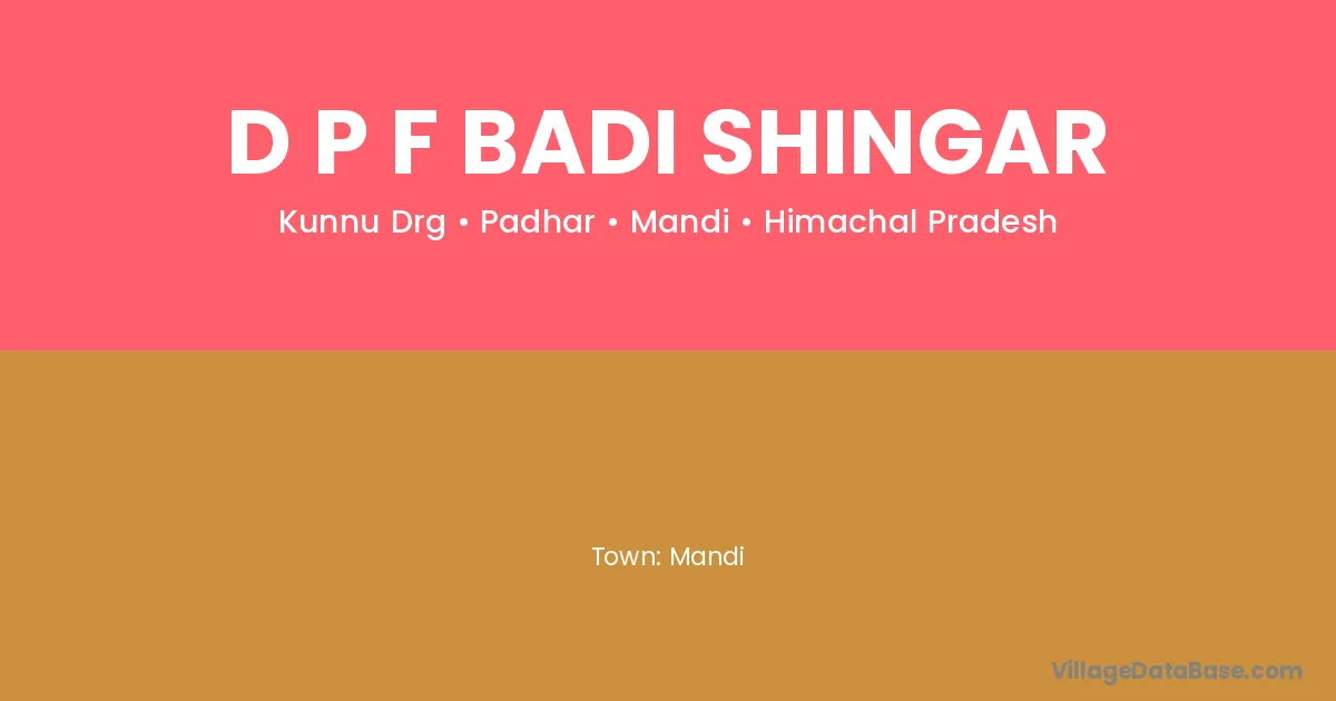 D P F Badi Shingar village is located in the Padhar Tehsil of the Mandi district in Himachal Pradesh .