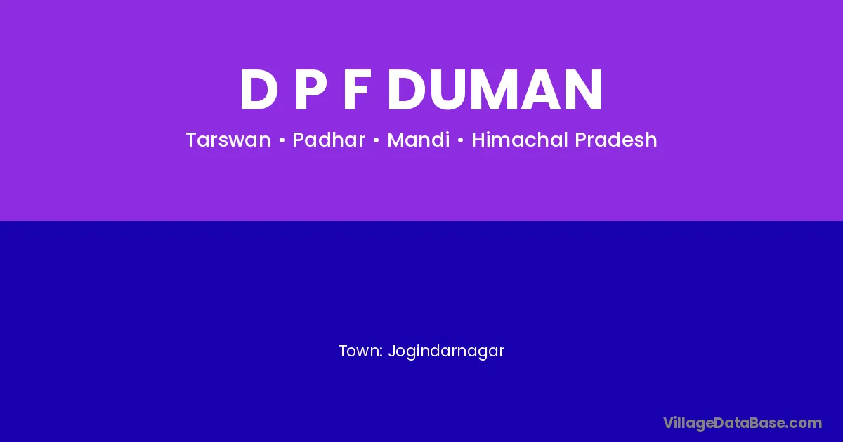 Jogindarnagar is the nearest town to D P F Duman village for major economic activities