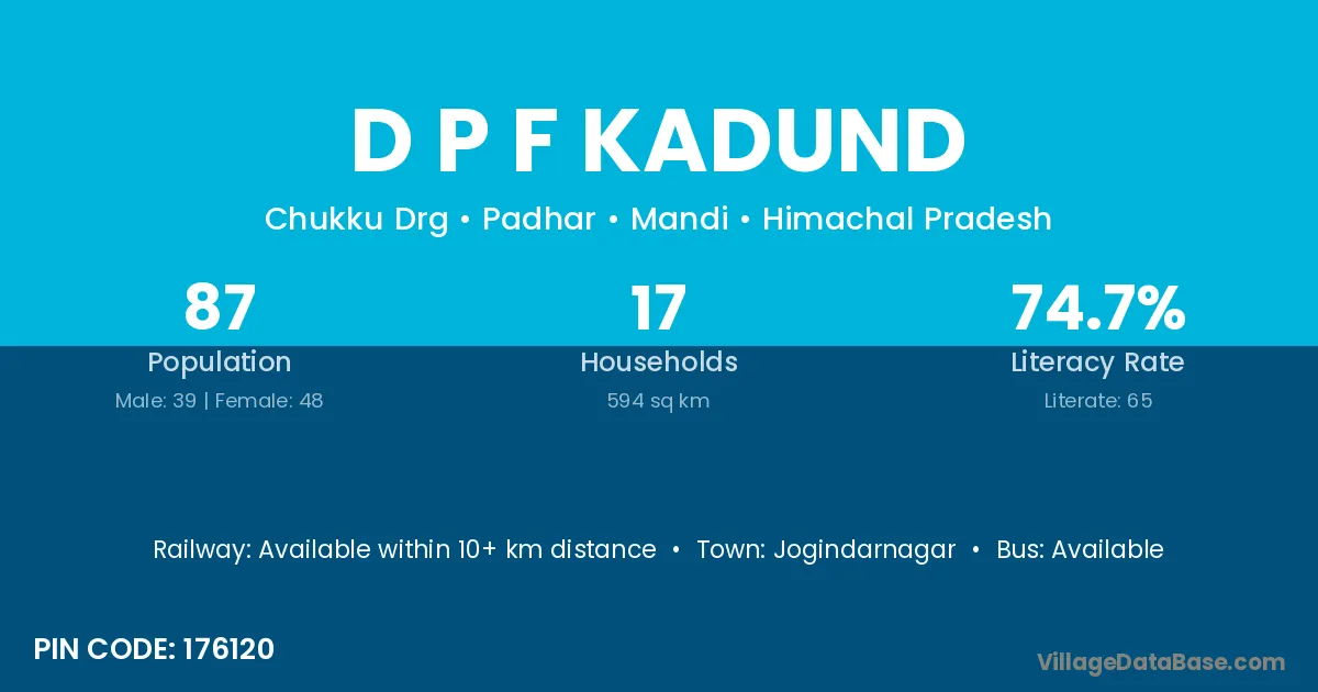 Jogindarnagar is the nearest town to D P F Kadund village for major economic activities
