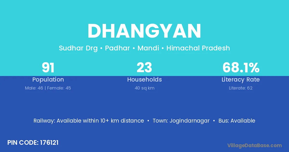 Jogindarnagar is the nearest town to Dhangyan village for major economic activities