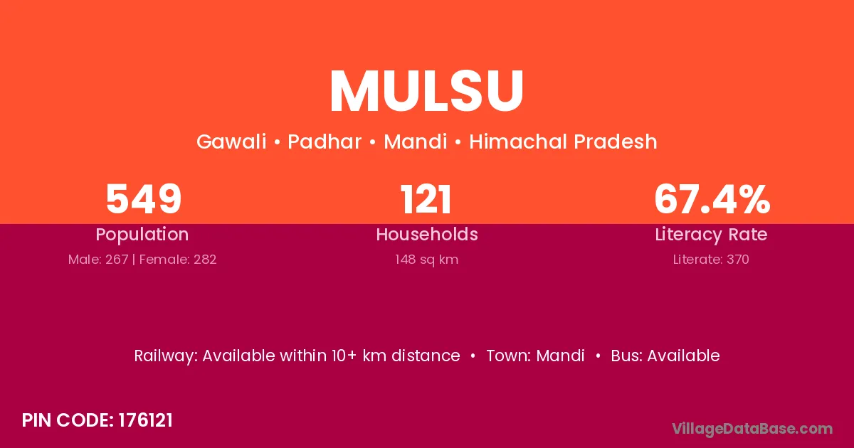 According to Census 2011 information, the village code of Mulsu village is 176121.