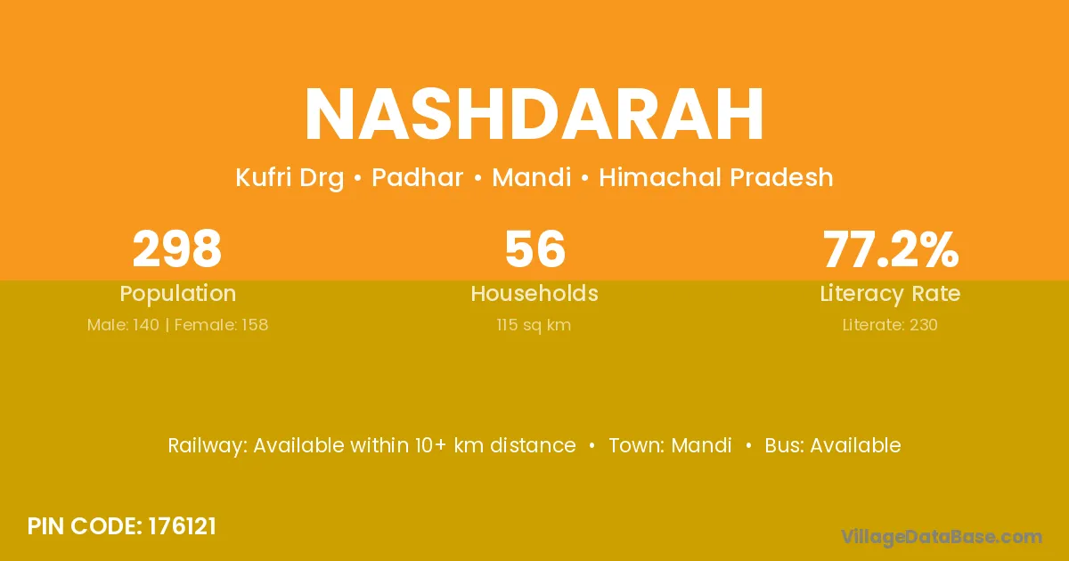 Mandi is the nearest town to Nashdarah village for major economic activities