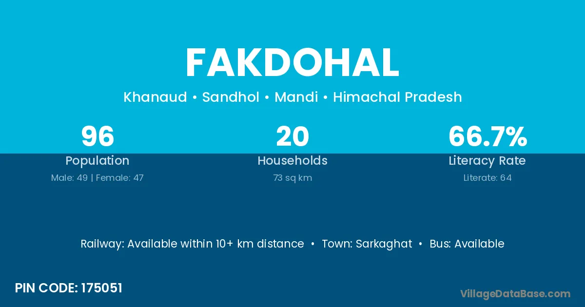 Fakdohal village has a total population of 96 people, of which 49 are males and 47 are females.