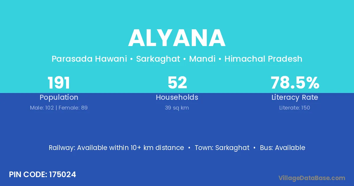 Sarkaghat is the nearest town to Alyana village for major economic activities