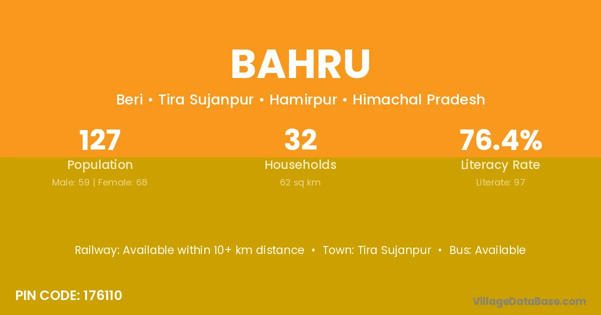 Sarkaghat is the nearest town to Bahru village for major economic activities