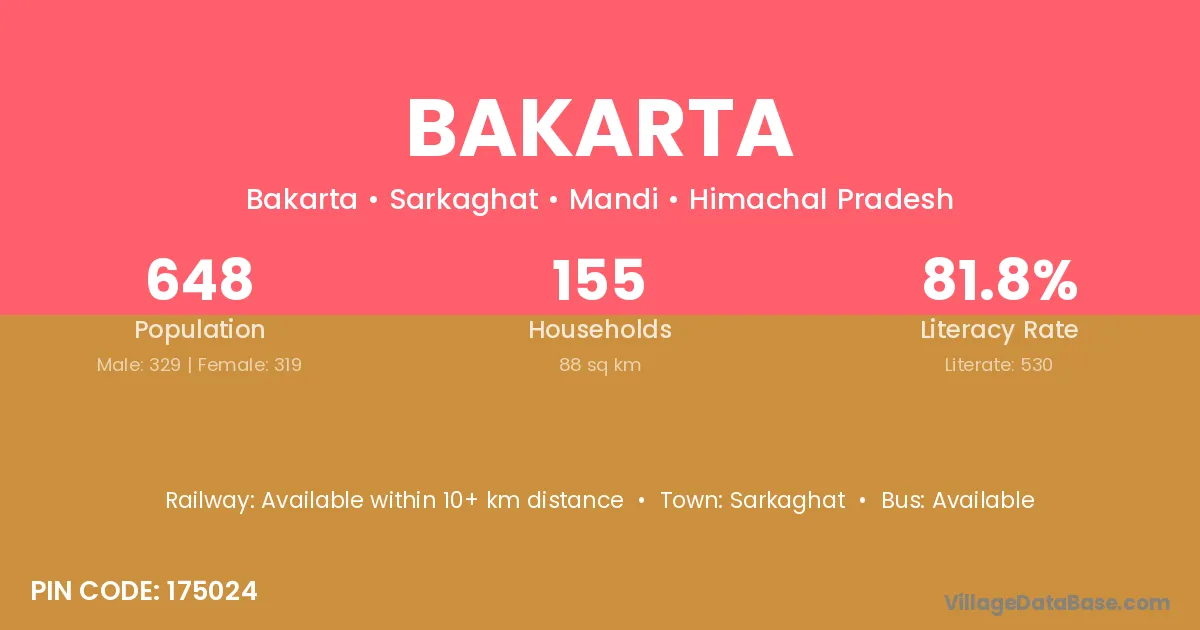 Bakarta village is located in the Sarkaghat Tehsil of the Mandi district in Himachal Pradesh .