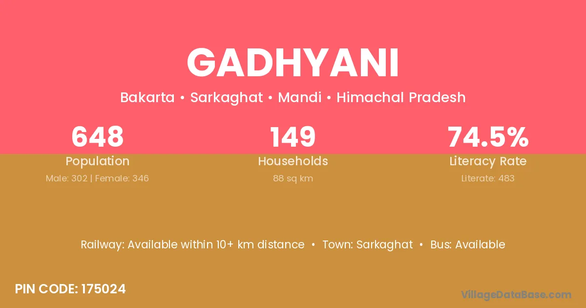 According to Census 2011 information, the village code of Gadhyani village is 175024.