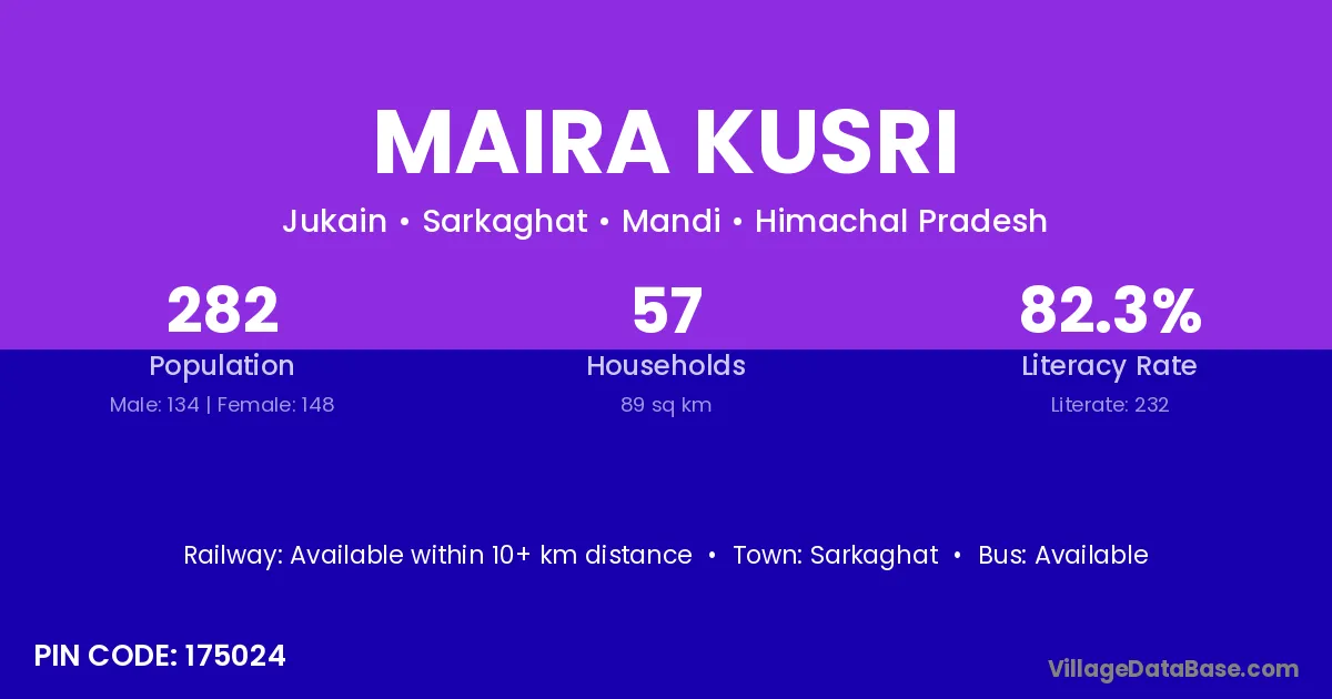 Sarkaghat is the nearest town to Maira Kusri village for major economic activities