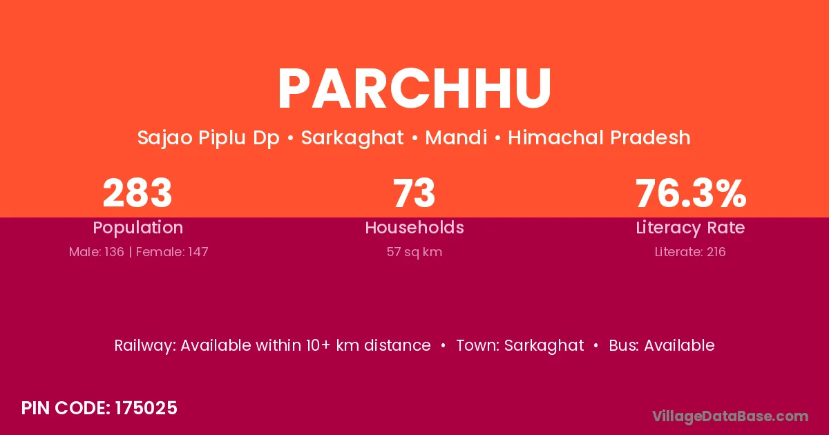 Parchhu village has a total population of 283 people, of which 136 are males and 147 are females.