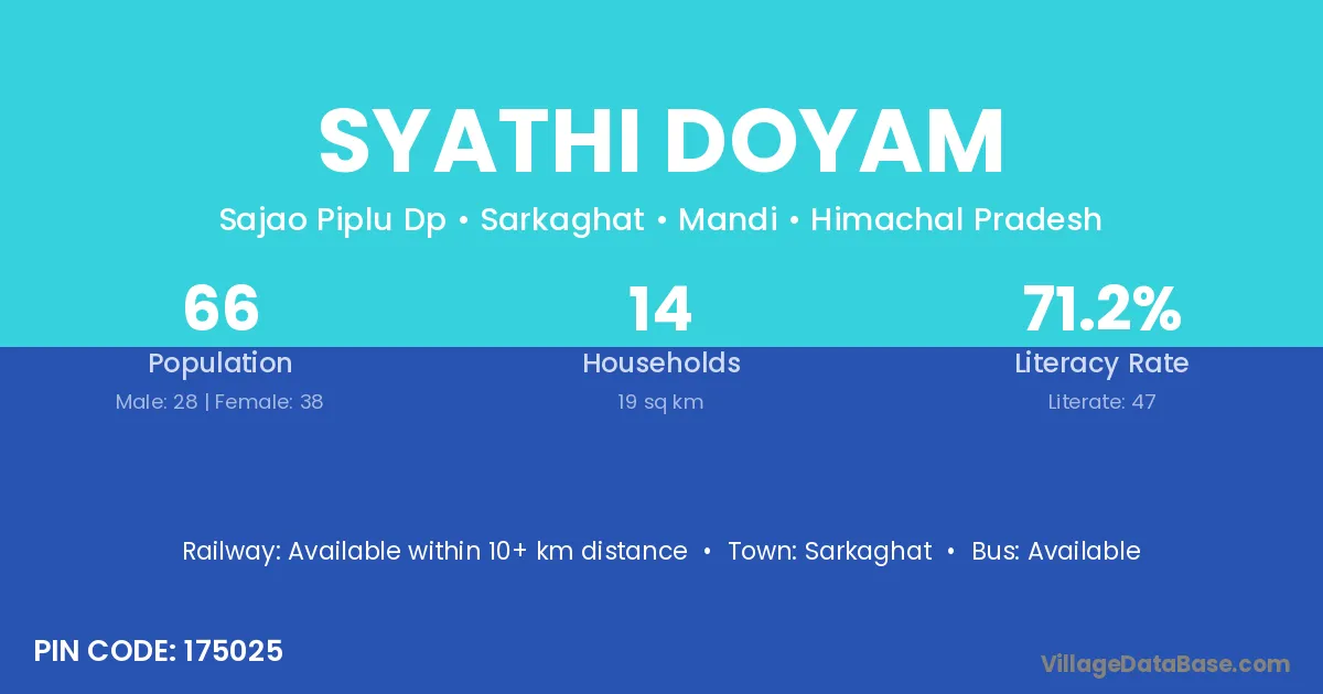 Sarkaghat is the nearest town to Syathi Doyam village for major economic activities