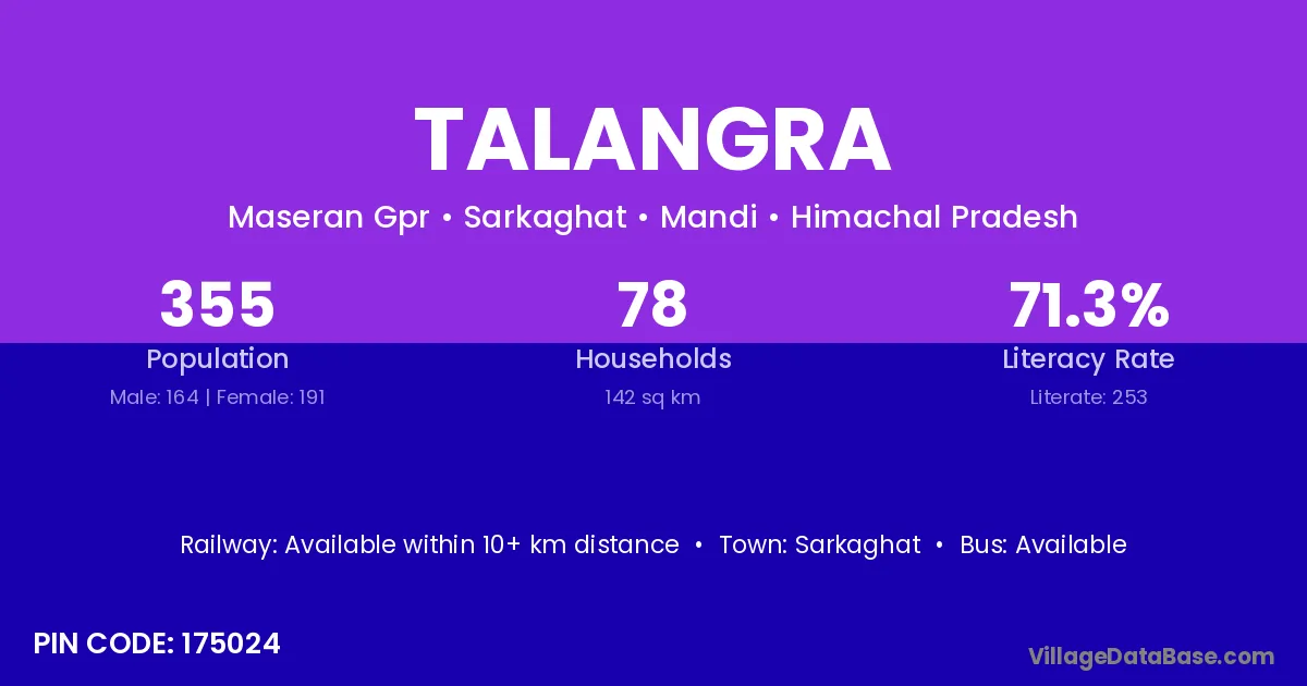 Sarkaghat is the nearest town to Talangra village for major economic activities
