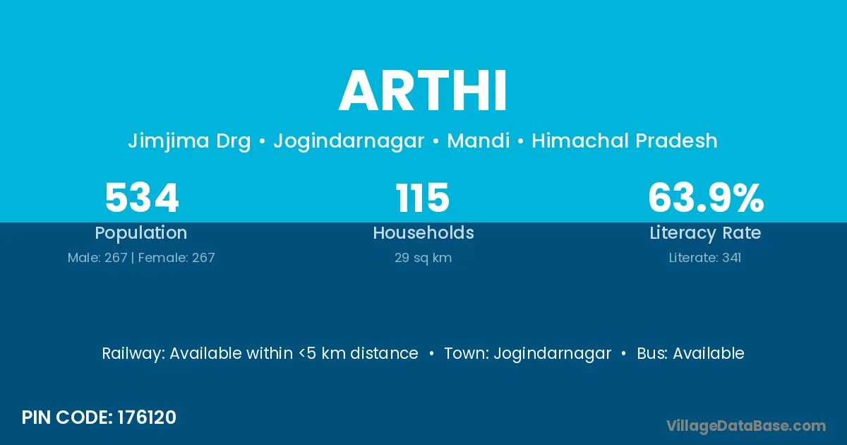 Sundarnagar is the nearest town to Arthi village for major economic activities
