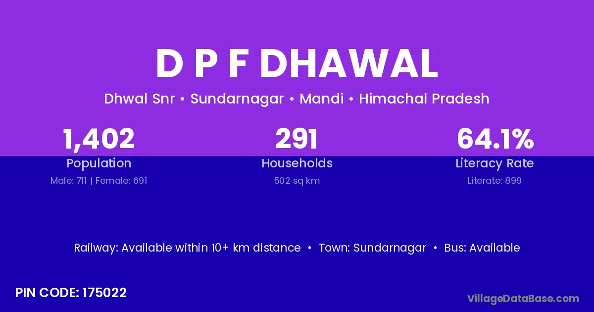 Sundarnagar is the nearest town to D P F Dhawal village for major economic activities