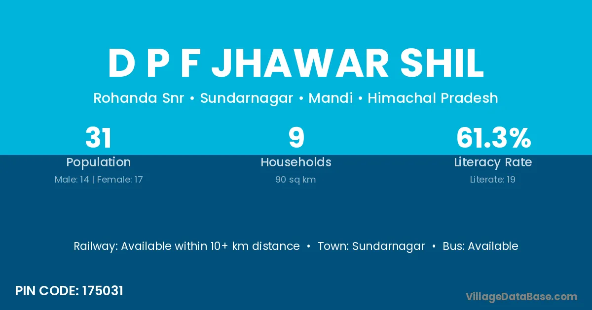 D P F Jhawar Shil village has a total population of 31 people, of which 14 are males and 17 are females.