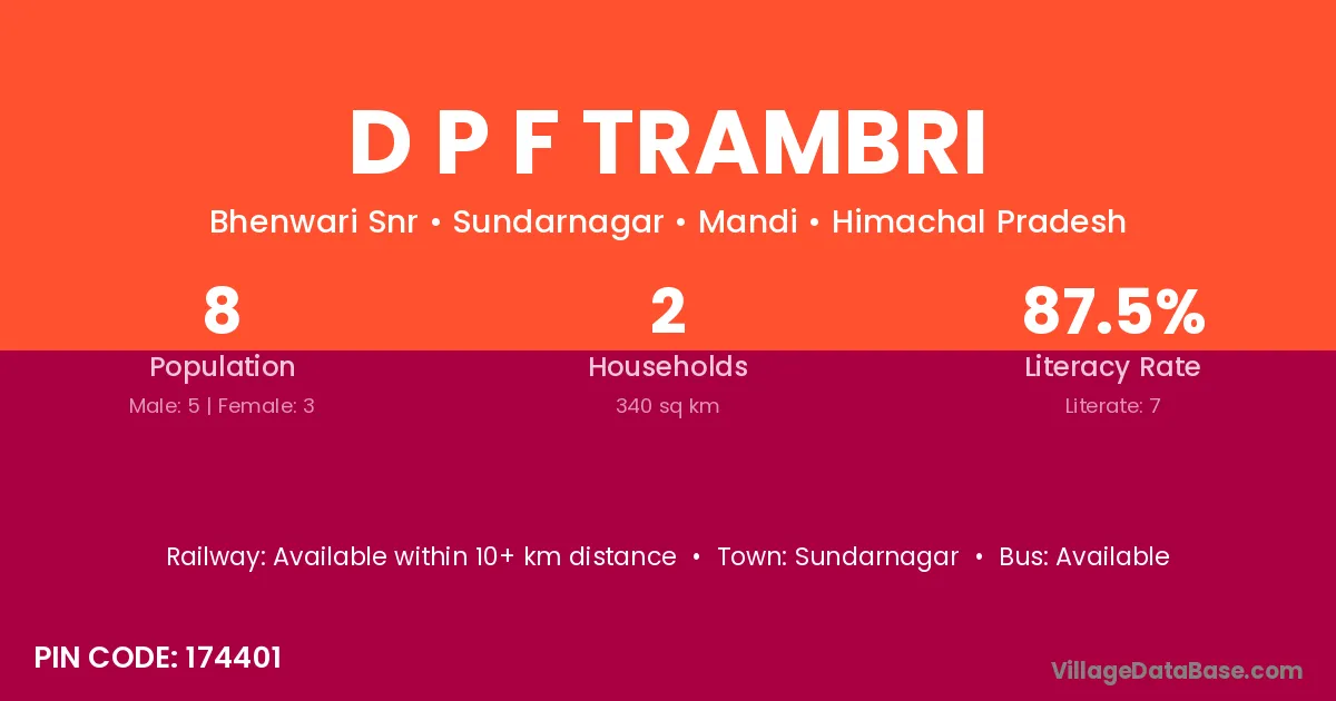 D P F Trambri village has a total population of 8 people, of which 5 are males and 3 are females.