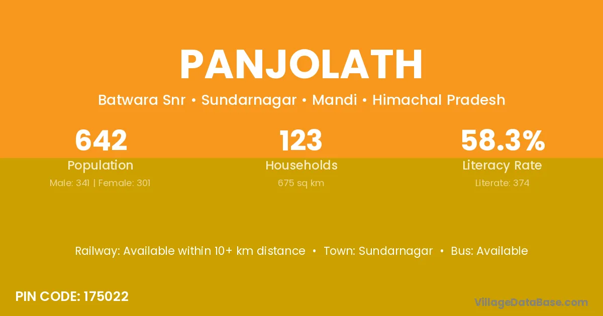 Panjolath village has a total population of 642 people, of which 341 are males and 301 are females.