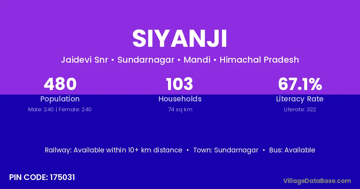 Siyanji village has a total population of 480 people, of which 240 are males and 240 are females.