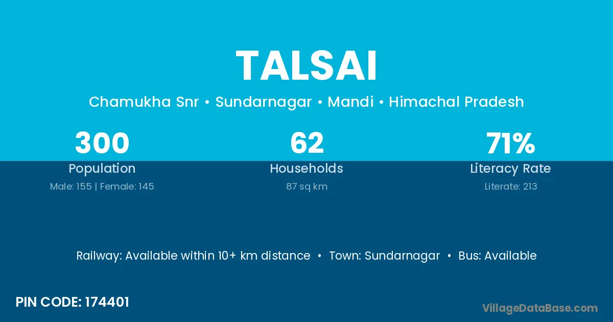 Sundarnagar is the nearest town to Talsai village for major economic activities