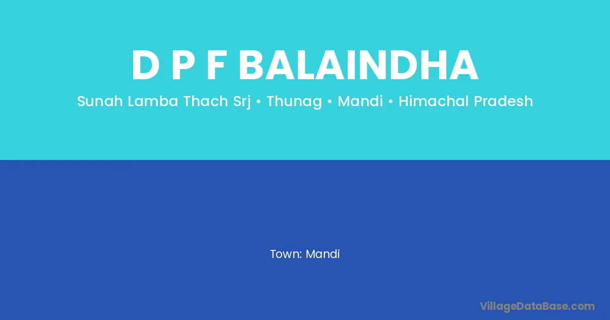 D P F Balaindha village is located in the Thunag Tehsil of the Mandi district in Himachal Pradesh .