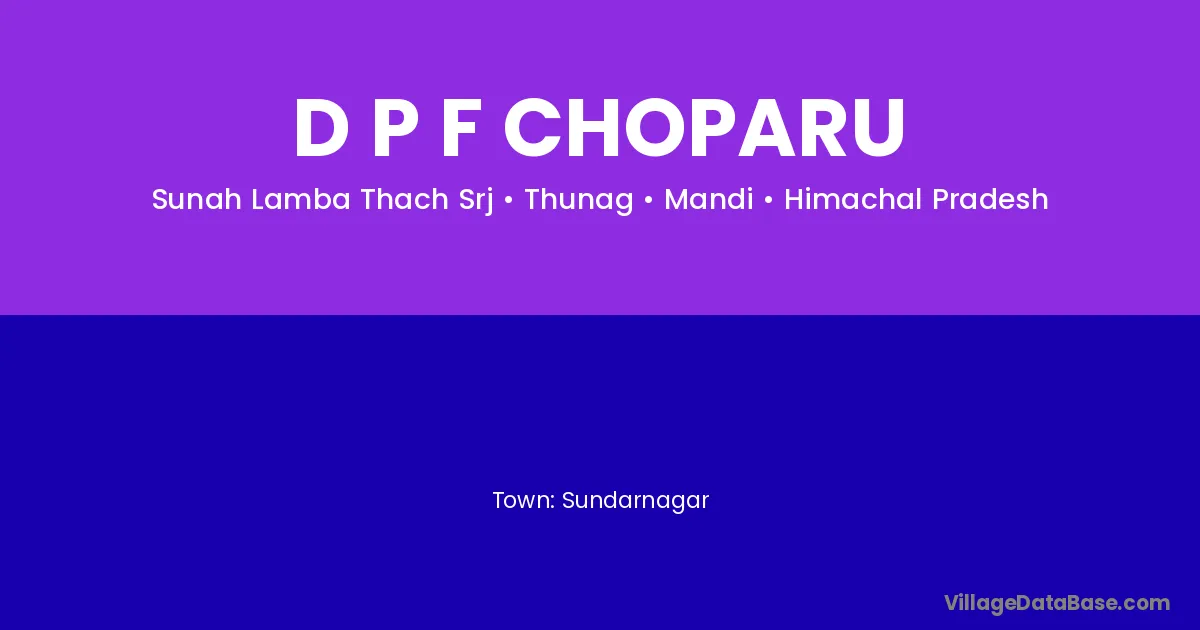 Sundarnagar is the nearest town to D P F Choparu village for major economic activities