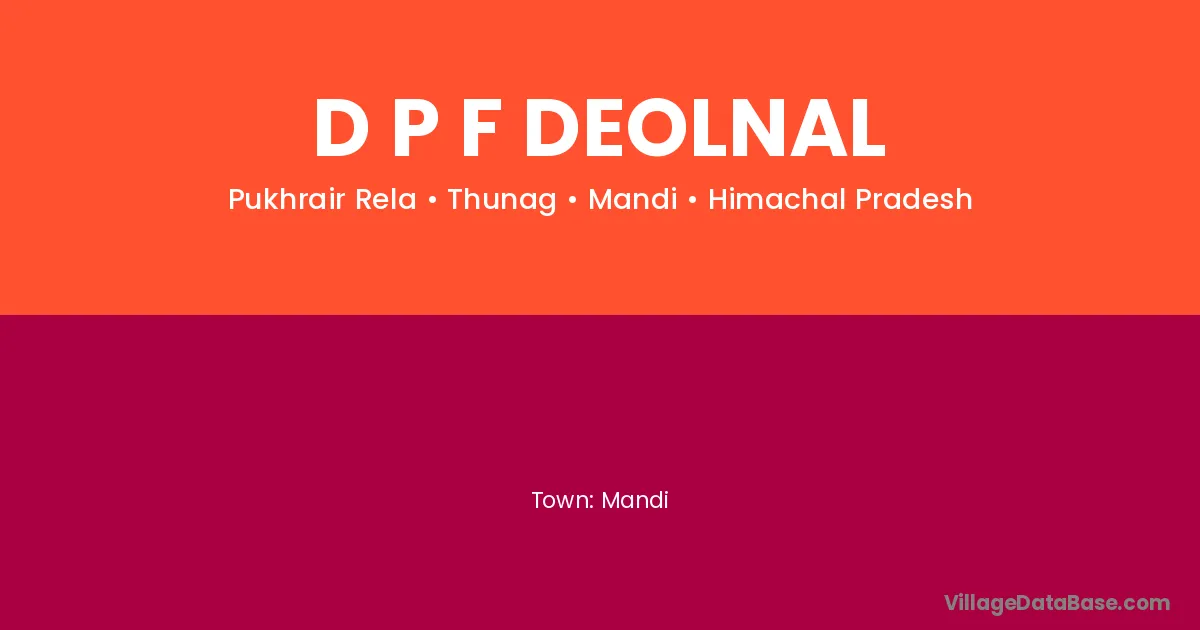 D P F Deolnal village is located in the Thunag Tehsil of the Mandi district in Himachal Pradesh .