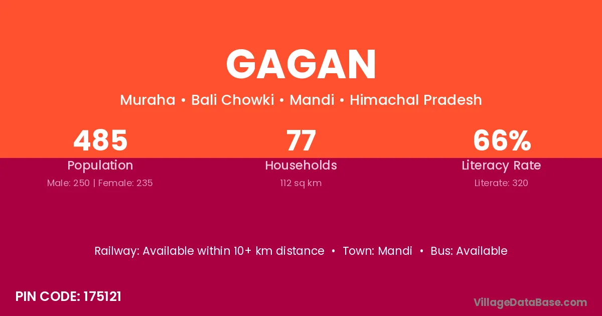 Mandi is the nearest town to Gagan village for major economic activities