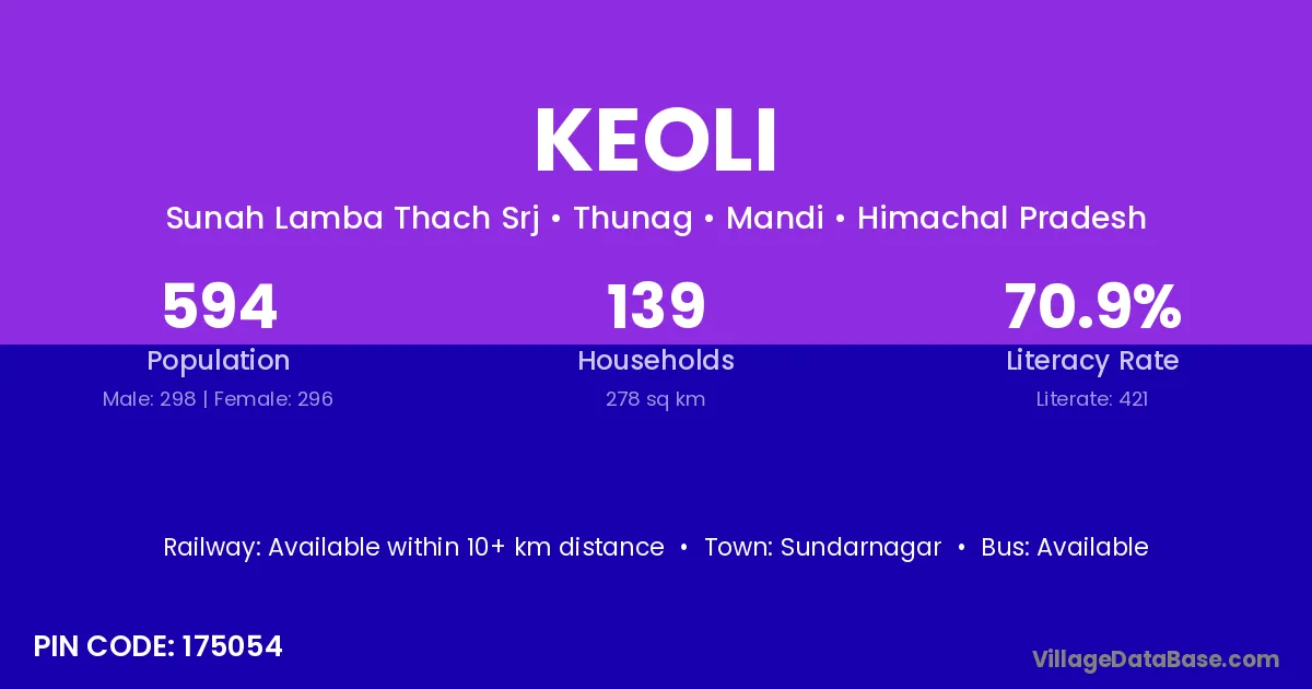 Sundarnagar is the nearest town to Keoli village for major economic activities