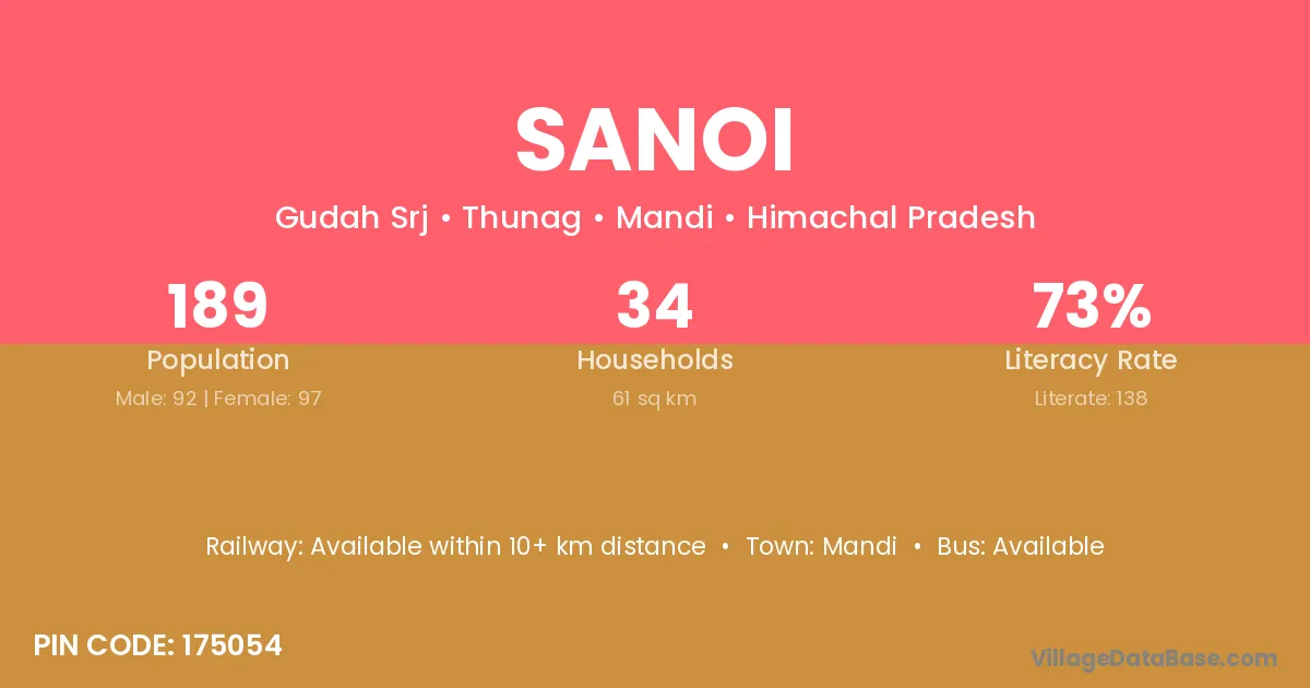 Sanoi village has a total population of 189 people, of which 92 are males and 97 are females.