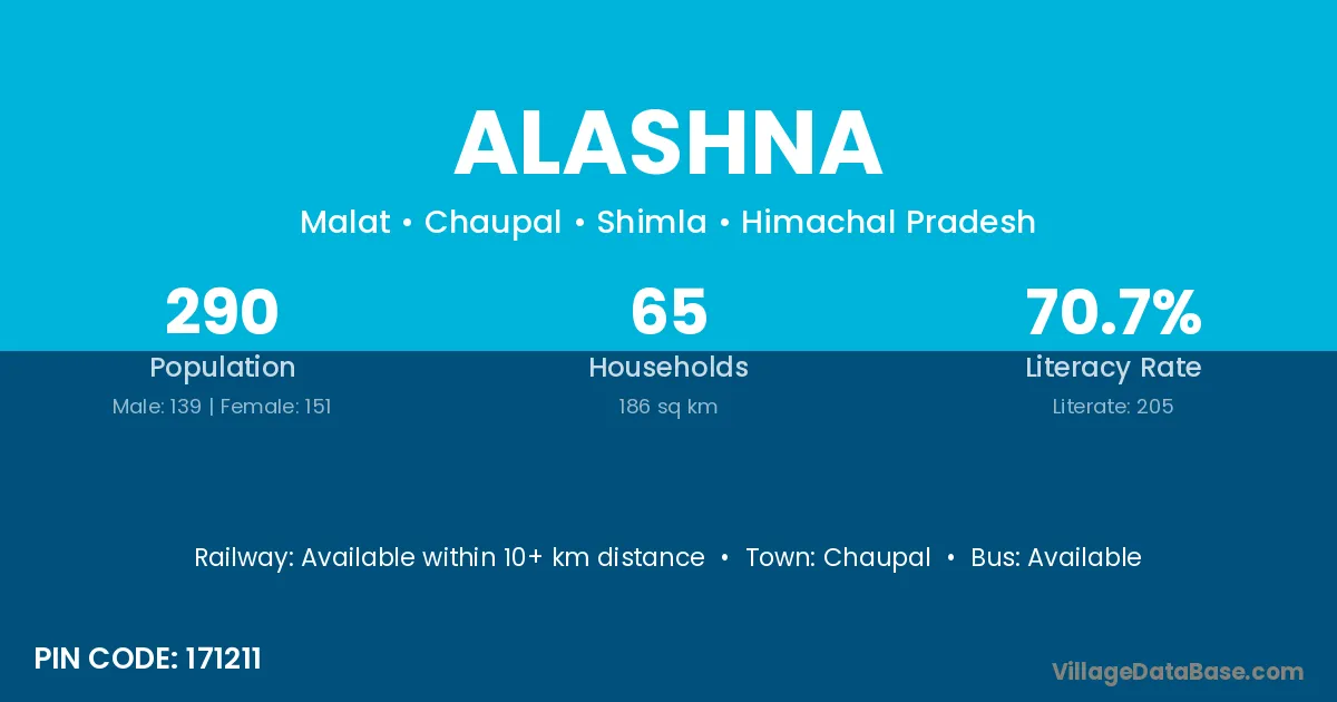 Alashna village has a total population of 290 people, of which 139 are males and 151 are females.
