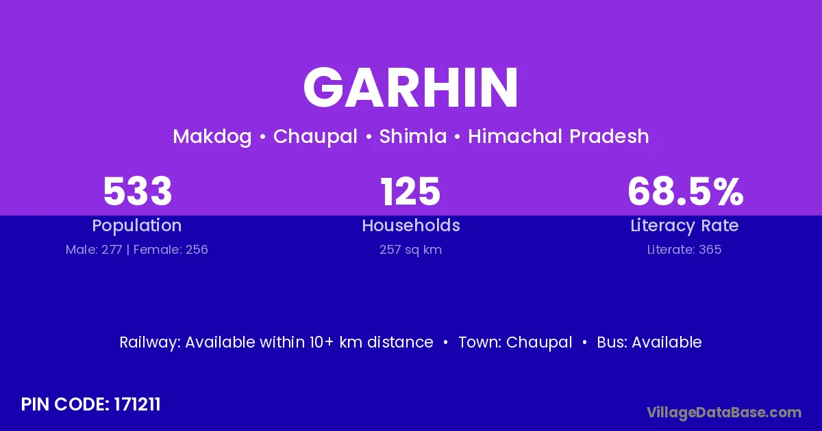 Chaupal is the nearest town to Garhin village for major economic activities