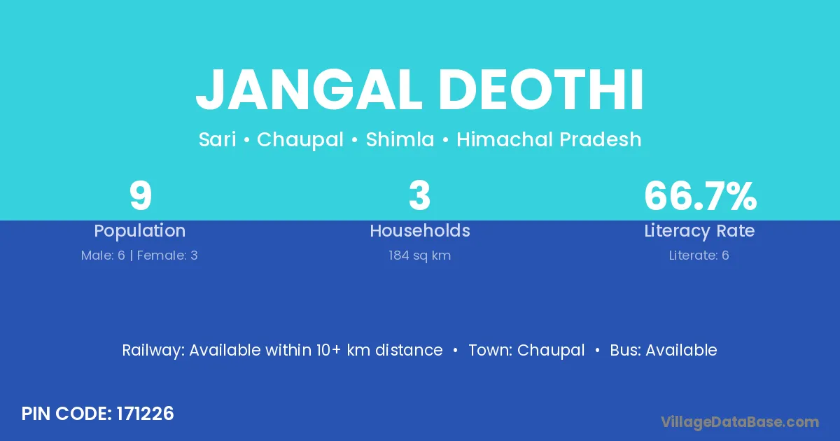 Jangal Deothi village has a total population of 9 people, of which 6 are males and 3 are females.