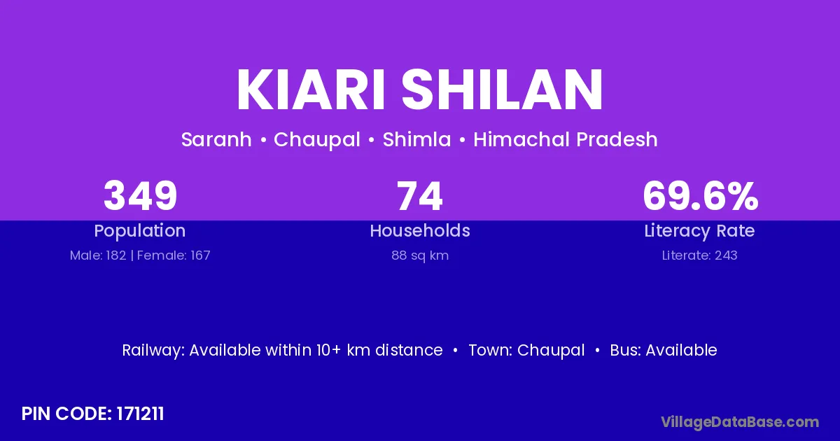 Kiari Shilan village has a total population of 349 people, of which 182 are males and 167 are females.