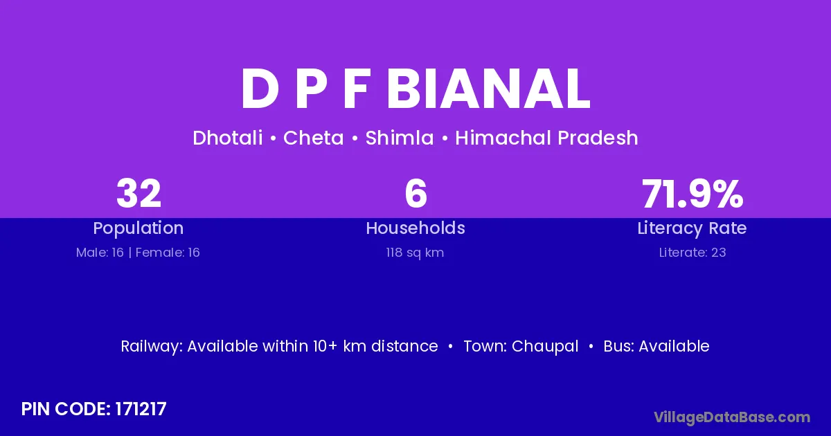 D P F Bianal village is located in the Cheta Tehsil of the Shimla district in Himachal Pradesh .