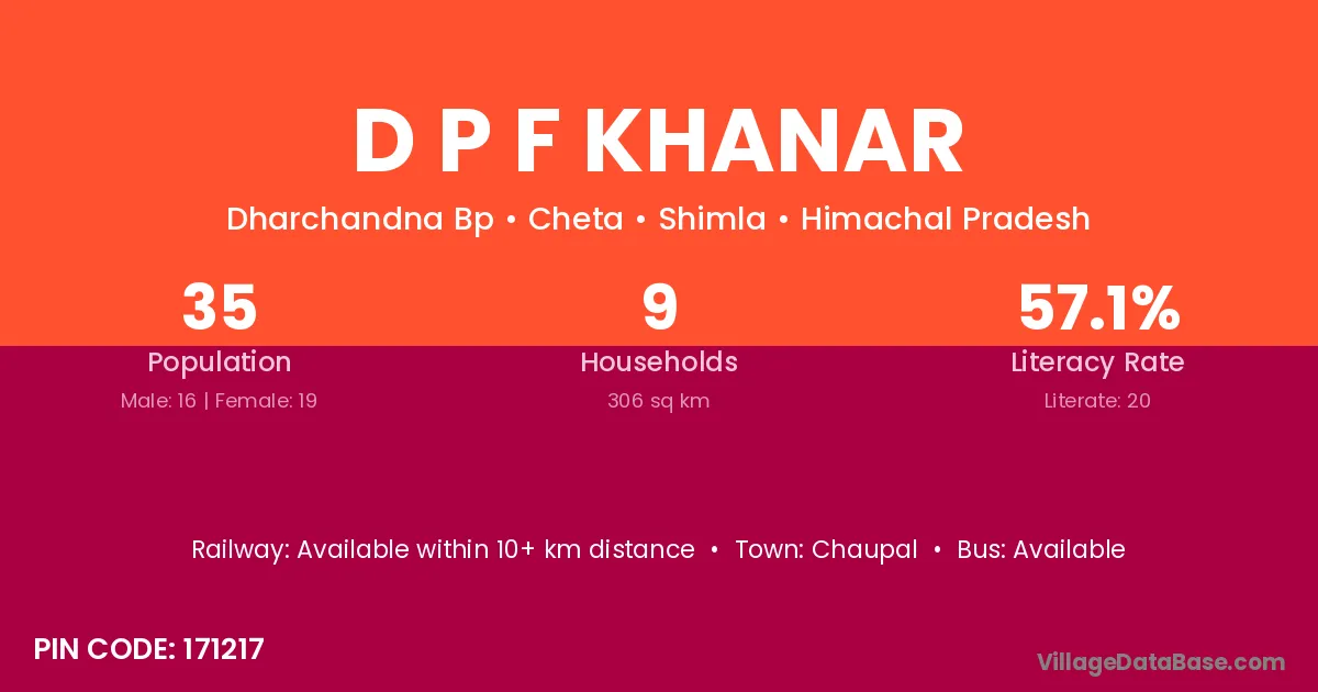 D P F Khanar village has a total population of 35 people, of which 16 are males and 19 are females.