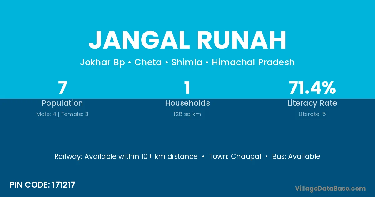Jangal Runah village has a total population of 7 people, of which 4 are males and 3 are females.