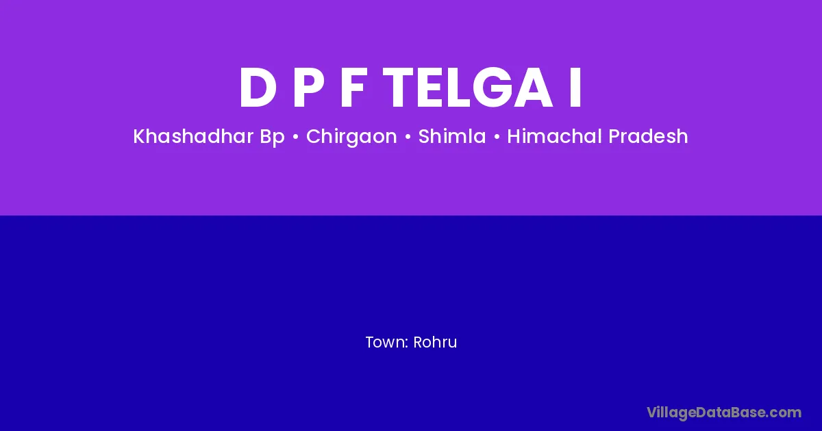 Rohru is the nearest town to D P F Telga I village for major economic activities