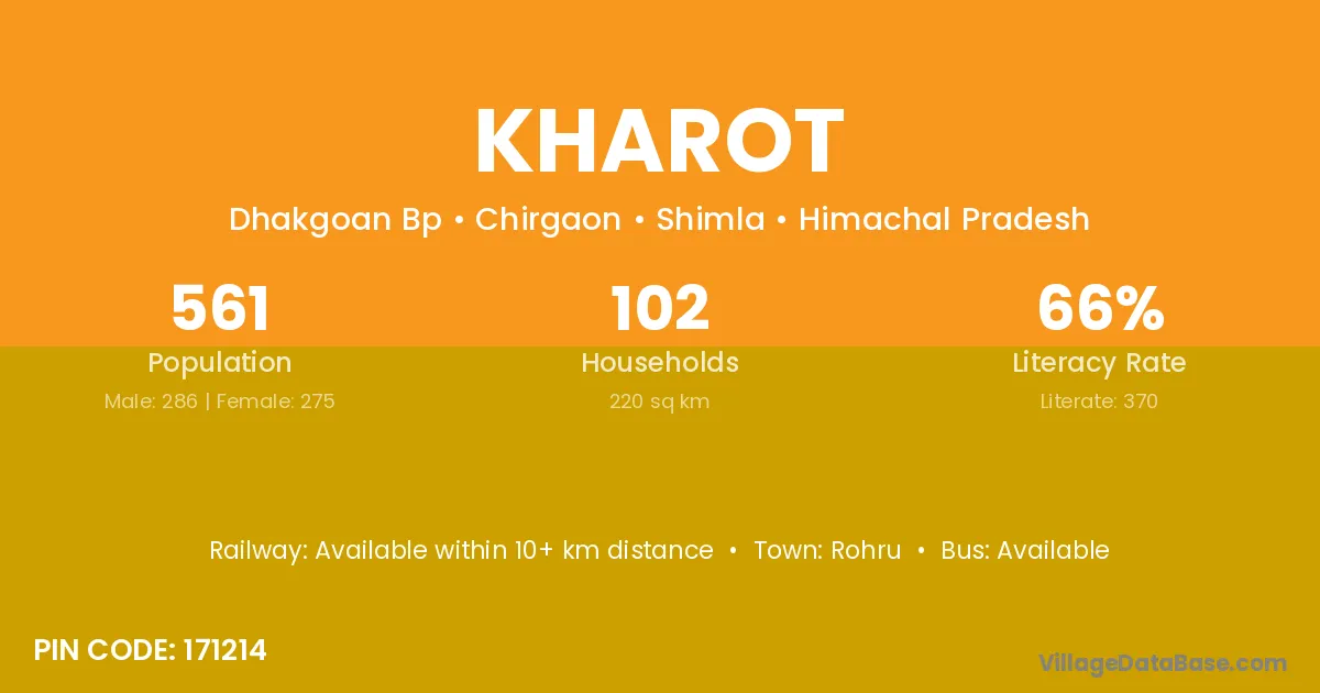 Kharot village has a total population of 561 people, of which 286 are males and 275 are females.