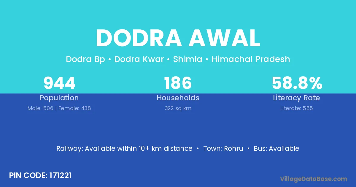 Rohru is the nearest town to Dodra Awal village for major economic activities