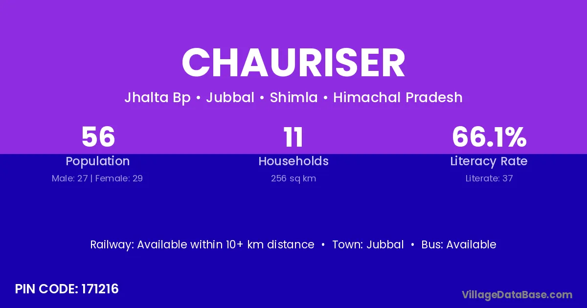 Jubbal is the nearest town to Chauriser village for major economic activities