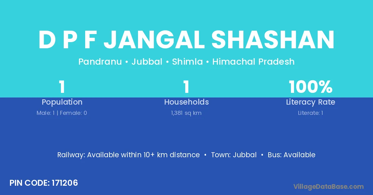 D P F Jangal Shashan village has a total population of 1 people, of which 1 are males and 0 are females.