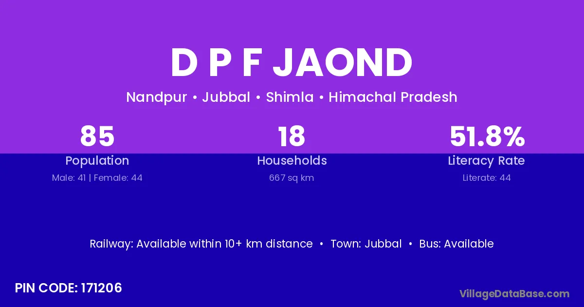 Jubbal is the nearest town to D P F Jaond village for major economic activities