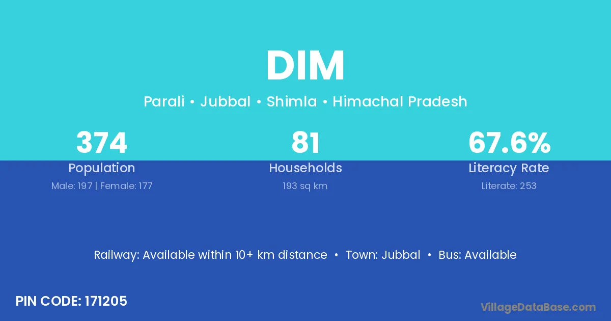 Jubbal is the nearest town to Dim village for major economic activities