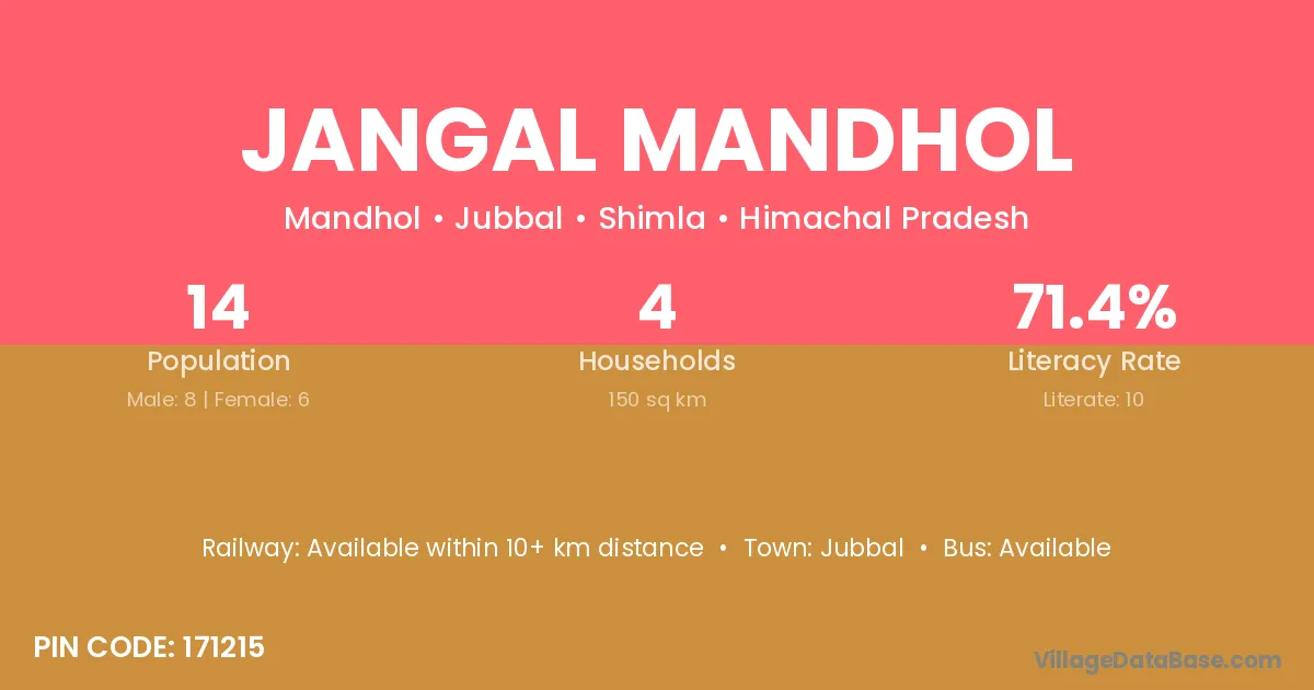 Jangal Mandhol village has a total population of 14 people, of which 8 are males and 6 are females.