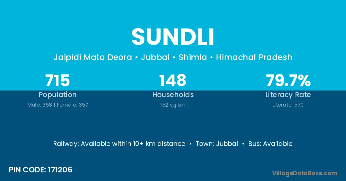 Sundli village has a total population of 715 people, of which 358 are males and 357 are females.