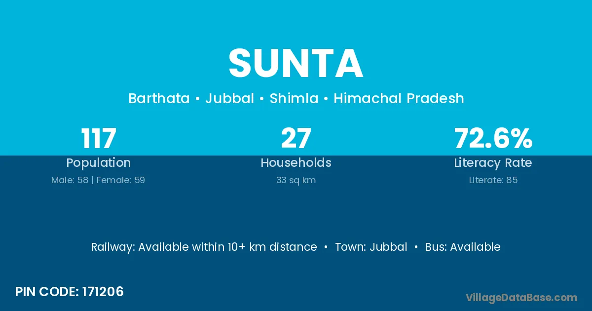 According to Census 2011 information, the village code of Sunta village is 171206.