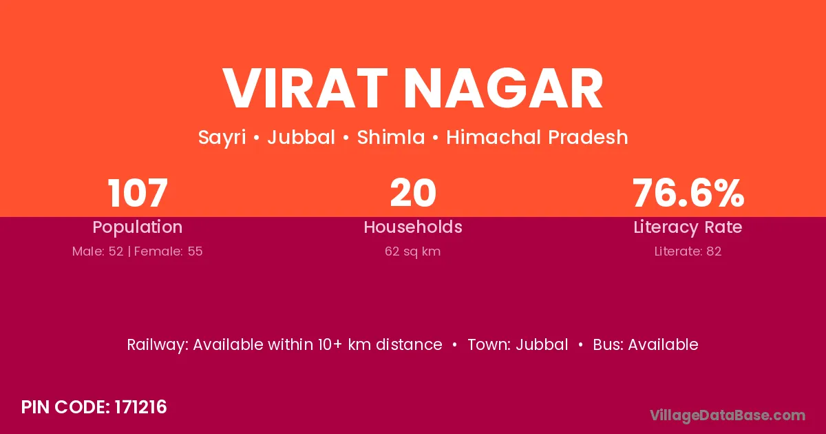 Virat Nagar village has a total population of 107 people, of which 52 are males and 55 are females.