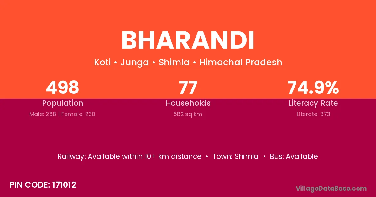 Bharandi village has a total population of 498 people, of which 268 are males and 230 are females.
